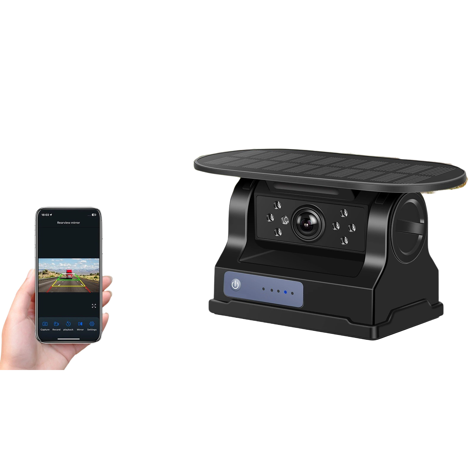 Kameraet monteres på få sekunder takket være den stærke magnet i bunden. Sæt det blot på bilens bagende, anhænger, trailer, varevogn eller campingvogn – helt uden boring eller ledningsarbejde. Kameraet tændes, forbindes via WiFi, og så er du klar.